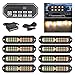 White Amber Led Grille Strobe Lights with 9 Key Switch 20-Mode Surface Mount 12-LED Mini Warning Flashing Grill Light Bar for Construction Tow Trucks Van Utility Vehicle, 8pcs Pack