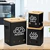 WUWEOT 3 Pack Vegetable Storage Tins, Potato Onion Garlic Storage Canister, Black Metal Vegetable Fresh Keeper Caddy, Kitchen Pantry Organizer Jars with Bamboo Lid and Aerating Holes