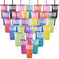 Reusable Plastic Tumblers with Lids & Straws - 30 Pcs 24oz Large Color Changing Cups for Adults Kids Women Party , Tall Iced Cold Straw Drinking Cute Tumbler Cup Bulk