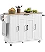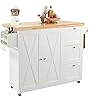 Product Summary: SogesGame Kitchen Island with Storage Cabinet, Rolling Kitchen Cart with Drawer, Drop Leaf Desktop, Spice Rack and Towel Holder, Wood Kitchen Serving Carts and Islands Table on Wheels, White