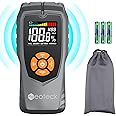 - 【Visual and Audible Alerts】4 modes of SOFTWOOD/ HARDWOOD/ WALL/ MASONRY are in this pinless moisture sensor, meeting multiple scene applications. This firewood moisture detector features a large LCD color display with a colored analog display bar, making visualization of measurement results easier to understand. This moisture meter for lumber will automatically alarm and quickly display the readings to help identify the moisture when the wood moisture reaches the set value