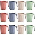 Nicunom 12 Pack Plastic Coffee Mug Set, Wheat Straw Cups with Handles, BPA Free Unbreakable Coffee Cups Reusable 16 Oz Mugs Set for Tea, Milk, Camping, Picnic, Dishwasher Safe