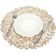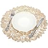 Cedilis 12 Pack Gold Placemat, 14.5inch Vinyl Leaf Round Table Placemat, Non-...