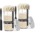 Sourdough Starter Jar 2 Pack, 24oz/650ml Sourdough Starter Kit with Date Marked Feeding Band, Thermometer, Silicone Scraper, Cloth Cover and Metal Lid for Sourdough Bread Baking Supplies
