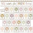 By integrating alphabet cards with uplifting affirmations, this bulletin board becomes the ideal dual-purpose resource for fostering both learning and a growth mindset. Header piece measures 48" x 9". 29 pieces.