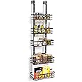 Over The Door Pantry Organizer, 5-Tier Behind The Door Storage Shelf, Adjustable Tiers Hanging & Wall Mount Spice Rack for Kitchen, Closet, Bathroom, Door