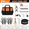 INCLY 24 PCS Kids Real Tool Set with Tool Bag, Boys Small Real Hand Tools Kit, Children Construction Learning Tools Hammer Screwdriver for Home DIY Building and Woodworking