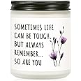 Adorned with a white sticker that reads, "Sometimes life can be tough, but always remember...so are you," this candle is not just a source of fragrance; it's a daily affirmation of resilience.