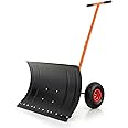 Product Summary: Goplus Snow Shovel for Driveway with Wheels, 74x50cm (Extra High) Angled Steel Blade, Heavy-Duty & Height Adjustable Snow Plow, Efficient & Back-Saver Snow Removal Tool for Doorway, Sidewalks