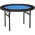 Soozier Poker Table Foldable, 47" Round Blackjack Casino Texas Holdem Poker Game Table for 8 Players with Cup Holders, Blue and Black