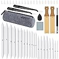AGPTEK 48 PCS Sketch Drawing Tools, 20 Blending Stumps Set with 2 Sandpaper Pencil Sharpeners, Pencil Extension, Erasers,20 sponge replacement heads & 1 Felt Bag for Student Sketch Drawing Accessories