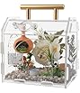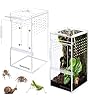 Product Summary: NCYP Glass Enclosure with Vent Holes for Insect, Spiders, Snails - 19 x 12.5 x 23 cm Small Closed Front Opening Door Succulent Terarium - House Shape Habitat, Home Decor Black (No Plants)