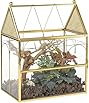 1. This is a house shape black small reptile terrariums. There are stainless steel mesh vents facing each other on the triangle roof part. The structure allows more air in at the same time, thus suitable for insect, spiders, and snails. 2. There is a front door with latch. The door is in the middle, so your jump spider can net on top. There are small gaps between panels because the only the joints are soldered. Compared with tin terrarium, its ability to keep moist is weaker. 3. Size: 7.5 x 4.9 x 9 inches / 19 x 12.5 x 23 CM; Materials: glass,metal. 4. This glass terrarium is a great decor for wedding, window, balcony, office desk, coffee table, or any other space; This plant terrarium motivate your imagination to create a fairy garden at home. 5. Please note the terrarium Only, plant NOT included. Glass terrarium does not hold water. (please put a water-absorb layer at the bottom to prevent leak).