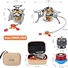 - Upgraded Piezo Ignition and Flame control Knod: The ignition needle position plus a baffle so that it's easier to ignite the gas. The backpacking stove's flame control knod has a long handle, it is more convenient to adjust the flame size.