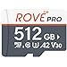 ROVE PRO Micro SD Card microSDXC 512GB Memory Card with Full-Size SD Adapter 100MB/s Read Speed, C10, U3, V30, 4K, A2 for Dash Cam, Android Smart Phones, Tablets, Games