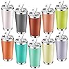 10 Pack Stainless Steel Tumbler Bulk,20 oz Double Wall Vacuum Insulated Travel Mug with Lid and Straw,Reusable Water Coffee Cup for Cold Hot Drinks,10 Colors
