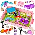 Pet Sensory Bin Toy for Kids,Dog and Cat Sandbox with Sensory Sand,Play Sand Kit,Pet Care Play Toy Set,Role Pretend Play Beach Toy for Girls Boys 3 4 5 6 Years Old
