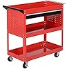 - 3-Tier Organization: This mechanic cart includes 3-tier trays and a smooth-gliding drawer with ball bearing runners for ample storage. Side slots with varied-size holes allow efficient tool placement.