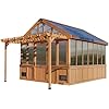 Product Summary: Backyard Discovery Bellerose XL Greenhouse 4m x 3.4m Cedar Wood, Polycarbonate Wall, Walk-in, Temp-Activated Fan, Hose Hook-Up, Electric, Staging Shelves, Year-Round Outdoor Gardening (13ft x 11ft)