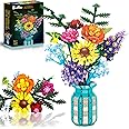 Flowers Bouquet Building Set with Vase for Adult, 10 Kinds of Flowers Including Sunflower, Baby's Breath, Rose, Compatible with Lego Botanical Collection, Office, Birthdays, Valentine's Day Gifts