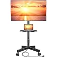 - 【Perfect Cable Management】: The rolling TV stand with wheels includes a power outlet with 3 AC outlets (120V/12A) and 2 USB ports (5V/2.1A) that attaches to the pole during installation. The power outlet features a thick 6.5 ft cord for long reach along with cord wraps and cable clips to neatly organize wires.