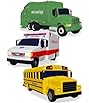 | Characters/Colors Included | City Bus, Ice Cream Truck, Taxi, Garbage Truck, Mail Truck, School Bus | Monkey, Sloth, Hippo, Tiger, Crocodile, Macaw | Rhino, Elephant, Zebra, Leopard, Giraffe, Lion | Orca, Dolphin, Sea Lion, Clownfish, Sea Otter, Sea Turtle | Fire Truck, Police Car, Tow Truck, Helicopter, Rescue Boat, Ambulance | Orca, Seal, Polar Bear |