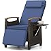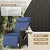 RELAX4LIFE Rattan Outdoor Recliner Chair - Wicker Chaise Lounge Chair w/Adjustable Back & Footrest, Acacia Wood Armrests, Flip Side Table, Cushion, Reclining Patio Chair for Pool Yard (1, Navy)