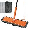 Product Summary: JEHONN Floor Dust Mop with Unique 90° Foldable Panel, 2 Chenille and 2 Microfiber Pads, 52 inches Long Handle Dry Wet Flat Dustmop for Cleaning Hardwood, Laminate, Tile, Marble (Orange)