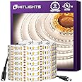 HitLights White LED Strip Lights 4000K,16.4ft High Density 12V Tape Light, UL Listed, 600 LEDs, CRI>90, 300Lm/ft, Flexible Dimmable Rope Lights for Bedroom, Kitchen, Cabinet(Power Source Not Included)
