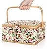 Product Summary: ZOOFOX Large Sewing Basket, Vintage Wooden Sewing Box with Removable Tray, Rose Floral Print Design Sewing Kit Storage Box for Sewing Mending, Beginner, Professional, No Accessories
