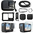 【Special Design】The silicone case perfectly fits the Go Pro Hero 13 Black camera frame to achieve seamless installation and precise accuracy.A safety rope is hung on the silicone sleeve to provide more protection for the camera.With the replacement side cover with a small side door, it is easier to charge. It can prevent dust and splash water stains from entering the camera.【Note】The replaced side door cannot be directly immersed in water for use!!! 【2 Pcak Screen Protector】2 Pack screen protector kit safeguard the lens and touch screen on your GoPro Hero from scuffs and scratches when the going gets tough. Made from tempered glass, these protectors feature anti-fingerprint and anti-reflective coatings so your footage looks its best. 【Latest Silicone Case For Hero13】Premium Silicone Protective Case protects your Hero 13 Black from scratches without adding extra bulk.Side Open Design allows you to charge the camera while recording for extended run times. 【Mini Size】Small and portable, easy to pack into your bag and carry it anywhere. 【Double Protection】High quality PU shell surface, provides waterproof, moisture and dustproof. The inner flannel design provides a greater degree of protection for the camera lens. This Mini protective case makes traveling a lot easier. 【Zipper Design & Aluminum Carabiner】360° smooth zipper design,allows it to be used with your GoPro even with selfie stick/ monopod attached, and provides easy access to your camera and accessories.The carabiner interface is also designed with a screw-type lock, which can be freely hung on other accessories such as backpacks, and there is no need to worry about falling off easily after locking.【Package List】Silicone shell x1;Display protecti/on film on the back of hardened glass x2;Hardened glass windscreen protection x2;Silicone lens cap x1;Replace Battery side door x1;Black PU Mini Carrying Case x1;Mountaineering buckle x1.