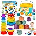 This item: Montessori Baby Toys for Ages 6–18 Months with Sensory Shape Sorter Matching Game Toy Stacking Ring Soft Building Blocks Developmental Learning Toys for Toddlers 1+ Year Old