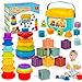 Colorful stacking toys, blocks, cups for toddlers 6M-36M are great for learning colors, shapes, textures, counting, visual development and other abilities.