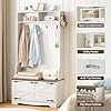 Product Summary: HOOBRO Hall Tree with Bench, Entryway Bench with Coat Rack and Shoe Cabinet, Flip Drawers, Farmhouse Hall Tree with Shoe Organizer, Mud Room, White and Walnut WH85MT01