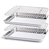 Product Summary: Baking Sheet with Rack Set – 2 Stainless Steel Baking Pans + 2 Cooling Racks,Heavy Duty Baking Tray for Oven,Non Toxic,Dishwasher Safe & Easy Clean – Perfect for Baking,Roasting,or Cooling
