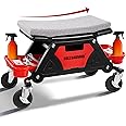 This item: BullsArmor Rolling Mechanic Seat 300 LBS Capacity Creeper Stool with 4” Wheels Locks Heavy Duty Garage Chair with 3 Slide Out Tool Trays Drawer, Auto Repair Detailing Car Wrap Motorcycle Workshop DIY