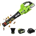 - 【22000 RPM Powerful Motors】Battery leaf blower with its advanced turbo-boosting technology. Boasting a remarkable max air speed of 165 MPH and an incredible 22,000 RPM, this electric leaf blower cordless effortlessly tackles even the most stubborn debris. Clear leaves, snow, dirt, and other accumulations from your yard, lawns, and outdoor spaces with ease.