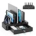 - All-in-One Storage Solution - The newly upgraded vertical laptop stand has six slots and a built-in storage drawer. The laptop vertical stand can store and organize up to six devices at the same time, the storage slots can securely hold laptops, tablets, cell phones, Kindle, books, gaming consoles and more. In addition the built-in drawer can store small items such as flash drives, pens, headphones and more, making it an efficient device organizer that saves you space on your desktop