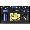 - 📍【Keep Your Platform Clean and Tidy】Mat has built-in card slots keep your small disassembled components in good classification, and easier get. you don’t worry the small screws or capacitors lost in your repairing work. It improve your work efficiency and keep maintenance platform clean and tidy. And the soft silicone mat also protects the surface of your electronics or circuit board on back side from getting.