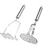 - 1. Dual-Purpose Mashers Set: Get two essential kitchen tools in one package! This set includes a linear masher head for fine, smooth mashing and a perforated round steel head for chunky textures. Whether you're making fluffy mashed potatoes, creamy cauliflower puree, or tenderly mashed meats, these mashers handle it all with ease.
