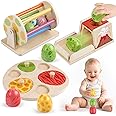 Montessori Toys for 1 Year Old, Wooden Baby Toys Dinosaur Egg Ball Drop Toy Wooden Puzzles Spinning Drum Baby Ball Toy for Infant Toddlers 1 2 3 Christmas Birthday Gift