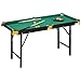Product Summary: Soozier 55" Mini Pool Table Set, Folding Billiard Table with Adjustable Height for Youth and Adults, with 2 Cues, 16 Balls, 2 Chalks, Triangle, Brush for Family, Office, Green