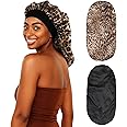 2 Pcs Satin Hair Bonnets for Sleeping, Silk Bonnet Sleeping Extra Long Sleep Cap, Elastic Leopard Sleepings Bonnets for Curly Hair Shower Caps for Women Girls