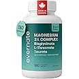 Magnesium 3X Complex – Bisglycinate, L-Threonate & Taurate – 3-in-1 Supplement for Brain, Muscle & Heart Support – 200mg Elemental Magnesium per Daily Dose – 180 Vegan Capsules – Made in Canada