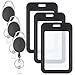 3 Pack ID Badge Holder with 3 Pack Retractable Badge Reel Vertical Retractable ID Card Holder with Double-Sided Windows Hard Black Card Protector for Office School Driver’s Licenses and Key Cards