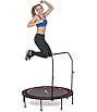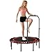 - Adjustable Handrail: Tailor your mini trampoline experience with a 5-level handrail, improving stability for beginners and seniors and building confidence for all jumps. You can also remove the handlebar as you like.