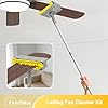 - 77" Extendable Aluminum Pole: This ceiling fan cleaner duster has 5 aluminum poles, extending up to 77” (6.4 ft) - no ladder or risky climbing needed. Lightweight yet sturdy, it enables hassle-free cleaning of high ceiling fans, light fixtures, or corners