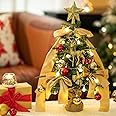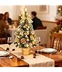 - Small Christmas Tree with Lights: Deck your home with holiday cheer using this charming 2ft / 24 inch mini Christmas tree! Attached with 25 warm white LED lights (8.2ft in length) and adorned with handcrafted gold ribbon bows, elegant ornaments, a dazzling golden reindeer and star topper, this festive table top Christmas tree instantly creates a magical Christmas atmosphere