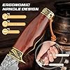 • ERGONOMIC WOOD HANDLE: The polished rosewood handle provides a secure, comfortable grip and stable control, ideal for tasks performed with a damascus fixed blade knife.