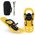 Goplus 17" Kids Snowshoes with Telescoping Trekking Poles & Carrying Bag, Lightweight All-Terrain Snow Shoes for Boys Girls Youth, Adjustable Ratchet Binding, Flexible Pivot Bar, Up to 80 lbs, Yellow